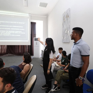 Beyond its academic dimension, the camp fostered intercultural dialogue, teamwork, and solidarity through networking activities, sports competitions, cultural programs, city tours, and outdoor experiences highlighting the rich historical and cultural heritage of Sheki. Interactive sessions and team-based exercises enabled participants to develop leadership, communication, and diplomatic skills while strengthening bonds among youth from diverse backgrounds.