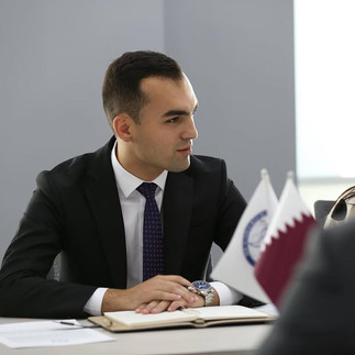 Then, a bilateral meeting was held between the sides to explore cooperation prospects and the expansion of NAMYO's activities in the region through the establishment of the Qatari National Chapter of NAMYO. The Chairperson of NAM Youth Organization, Mr. Ordukhan Gahramanzade, introduced essential information about the Organization's history, mission, and vision, as well as the large-scale events it has organized during its existence. H.E. Mr. Faisal bin Abdullah Hamad Al-Hanzab expressed his satisfaction with the successful initiatives carried out by NAMYO and conveyed his best wishes for its future endeavors.